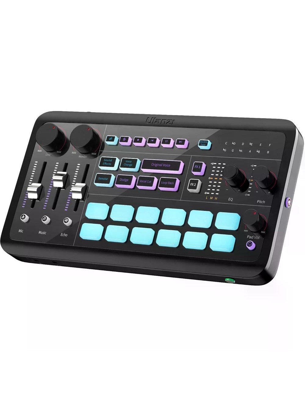 كرت صوت احترافي من ULANZI مخصص للبث المباشر وصناعة المحتوى، يمنحك تحكم كامل بالصوت مع مؤثرات جاهزة وجودة عالية للتسجيل والمونتاج.